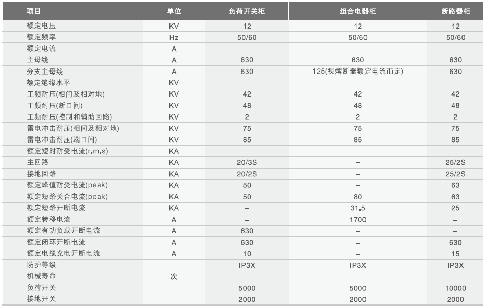 XGN15-12系列交流金屬環網開關設備的主開關選用本公司生產的FLN36-12型或國外公司生產的SFG型SF6負荷開關。也可根據用戶的需要配裝VS1型、VD4/S型、ISM型真空斷路器或HD4/S5型SF6斷路器。負荷開關和斷路器可手動或電動操作,選配電動操作機構、PT、CT、FTU和通信裝置后可實現配電自動化功能。